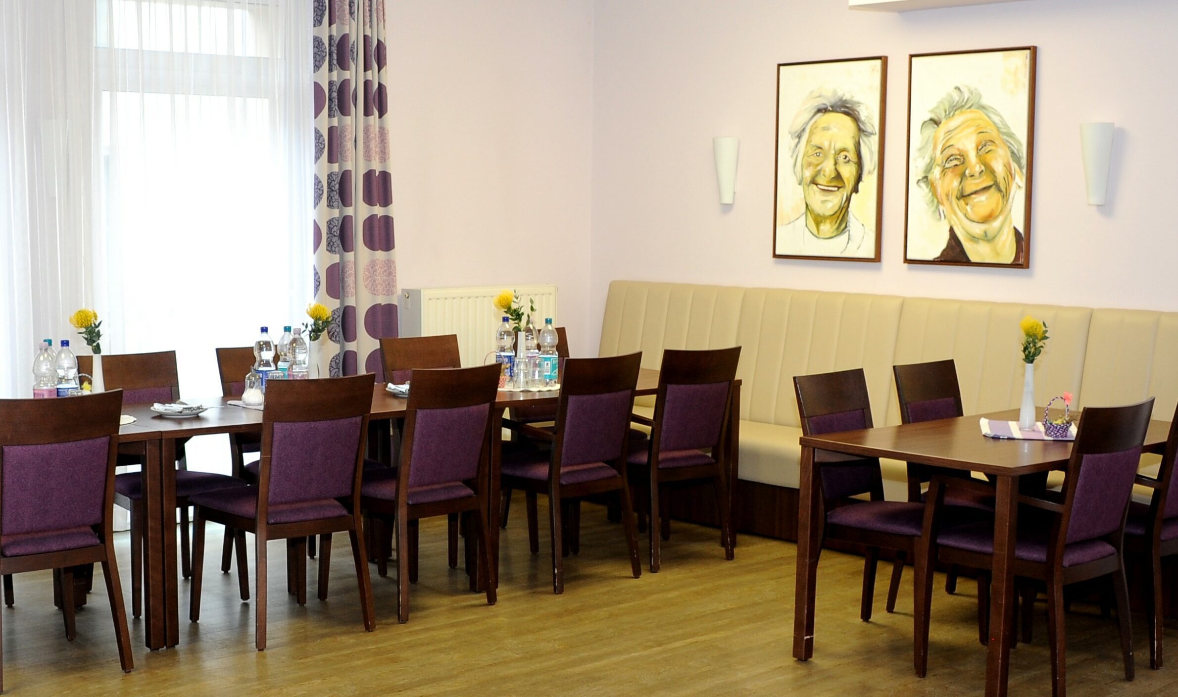 Die hell und freundlich eingerichteten Einzel- und Doppelzimmer entsprechen den neuesten Qualitäts-, Komfort- und Sicherheitsansprüchen. Helle Farbgebung und zeitgemäße, geschmackvolle Möbel sorgen für ein wohnliches Ambiente. Für das gesellige Beisammensein stehen großzügige, helle Gemeinschaftsbereiche zur Verfügung – zum Teil mit Kaminöfen, die an kühlen Abenden eine besonders behagliche Atmosphäre schaffen. Bei schönem Wetter locken die beiden Innenhöfe mit gemütlichen Sitzecken und der Garten hinter dem Haus ins Freie. Die Hochbeete in den Innenhöfen sind mit duftenden Kräutern und hübschen Blumen bepflanzt und werden gemeinsam von den Bewohner:innen und Mitarbeiter:innen liebevoll gepflegt. Ein beliebter Aufenthaltsort ist unser öffentliches Café, in dem sich Kontakte zwischen Bewohner:innen und Gästen von außerhalb ganz zwanglos ergeben.